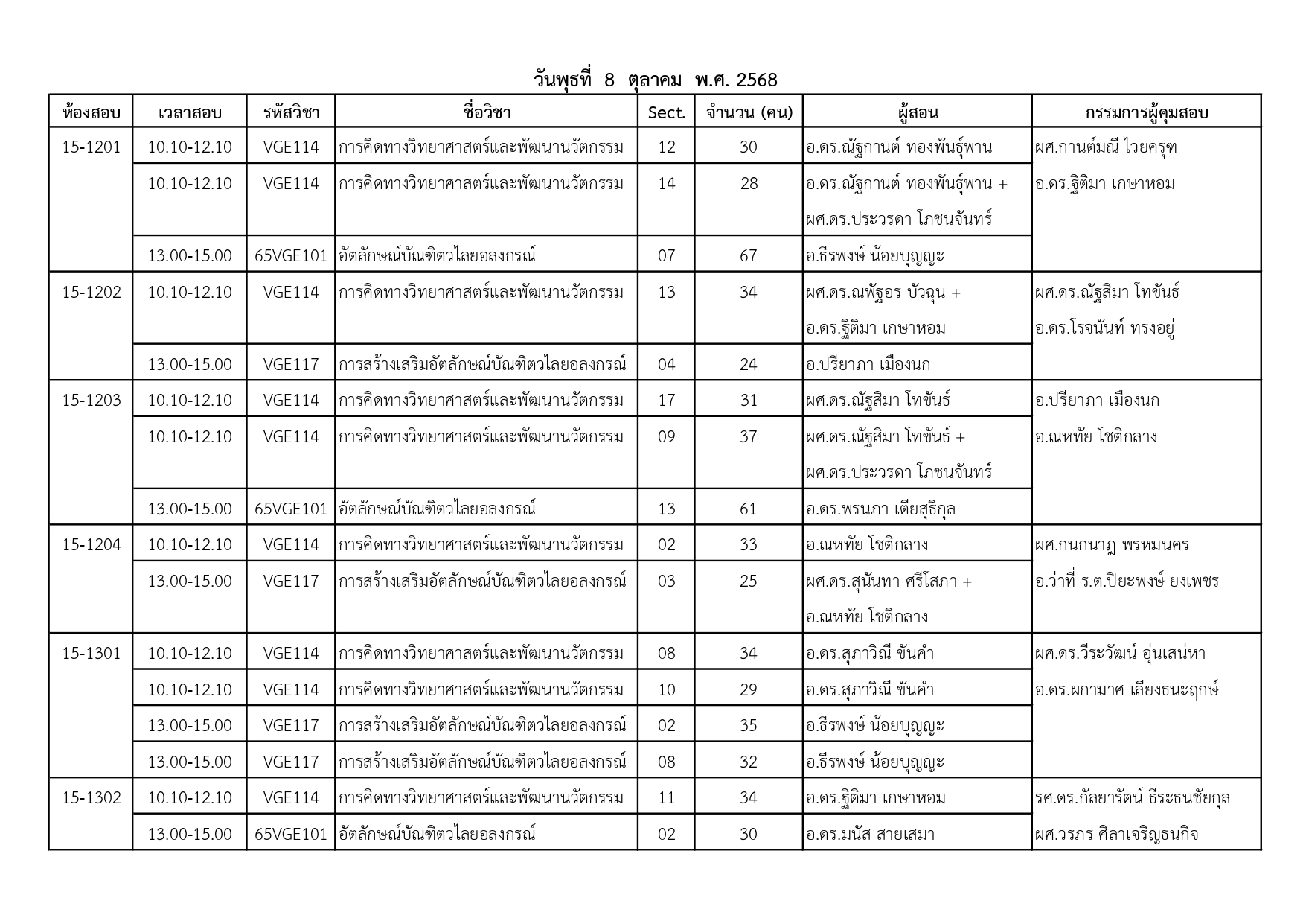 ตารางสอบวันพุธที่ 8 ตุลาคม 2568